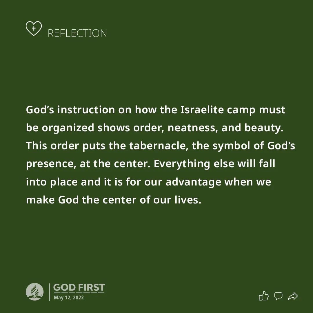 God’s character was revealed in His instructions on how the camps of Israel should be organized. Truly, He is a God of order and beauty, and He desires that we put Him at the center of our lives.